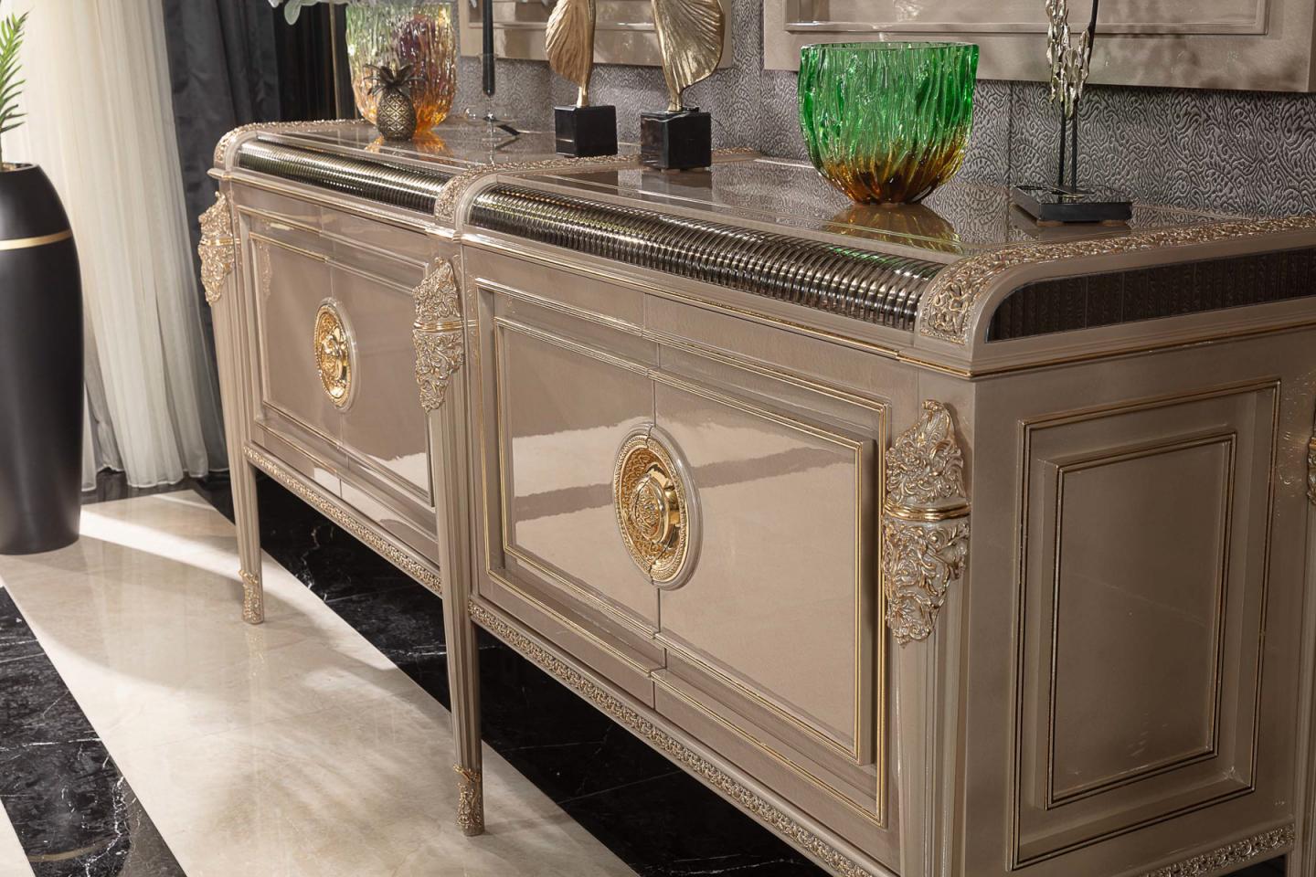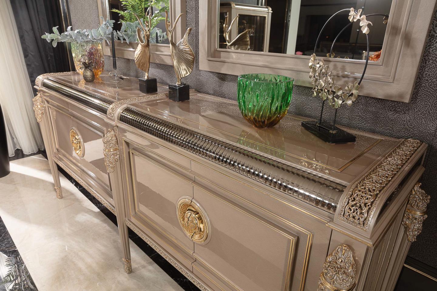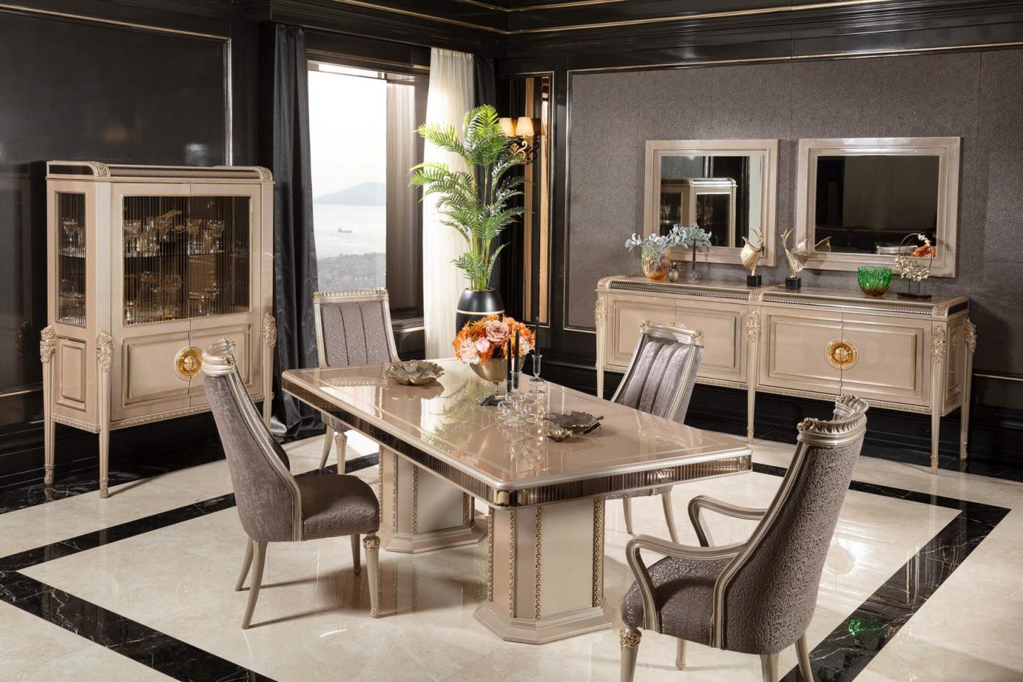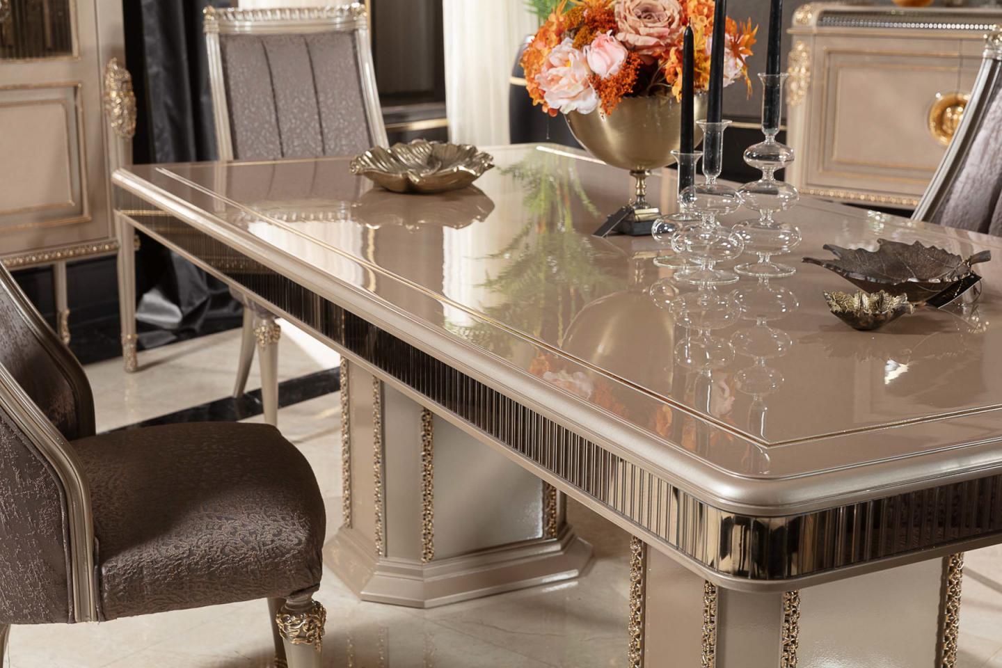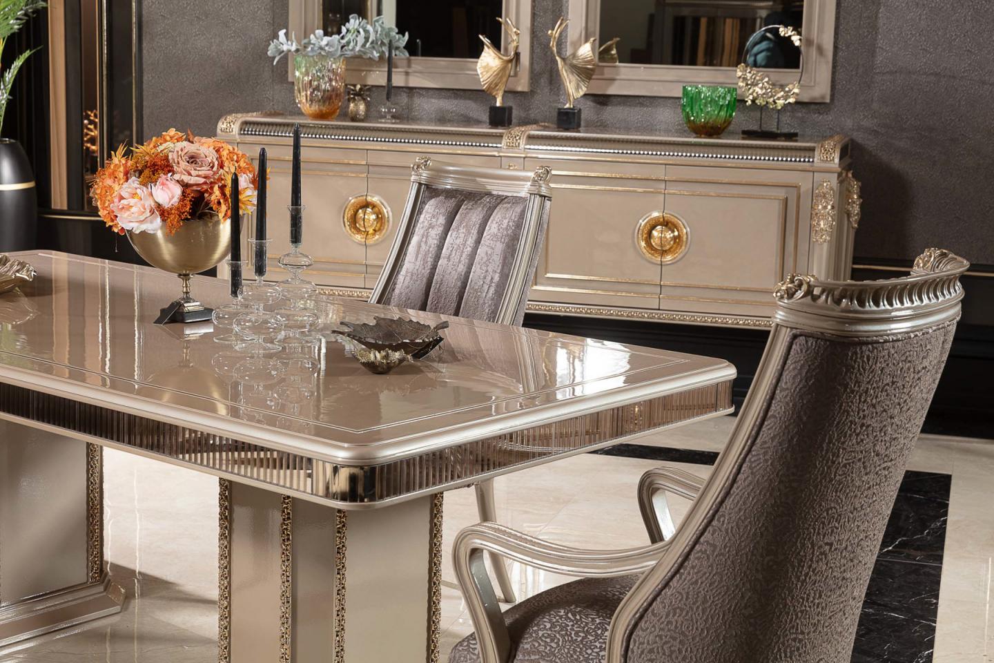 GÜNDÜZ MOBİLYA olarak, Luxury tarzını modüler tasarım ile birleştiren benzersiz Yemek Odası Tasarımımız, yaşam alanlarınıza dekoratif bir etki sunmaya hazır. Geniş dokusundaki parlak detaylar, bu tasarımı yaşam alanlarınıza zarif bir şekilde yansıtarak etkileyici bir atmosfer oluşturacak.