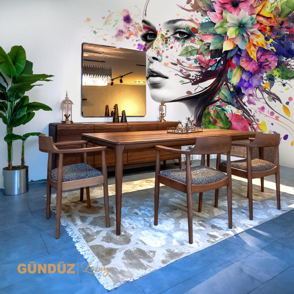 Doğal doku geçişleri ve parlak ahşap tonlarını bir araya getiren bu Yemek Odası Takımı, rafine detaylara olan özel vurgusu ile öne çıkıyor. Geniş dokusu, ortama ferahlık hissi katarken, şık ve gösterişli detayları ise estetik açıdan çarpıcı bir etki sunuyor. GÜNDÜZ MOBİLYA'nın eşsiz tasarım anlayışı ile oluşturulan bu yemek odası takımı, yaşam alanlarınıza dekoratif bir parlaklık kazandırmayı amaçlıyor.